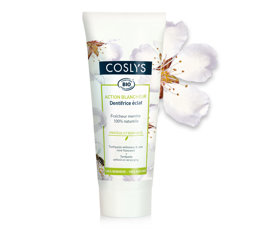 - Contains bicarbonate and silica that help polishing the enamel and slow down superficial coloring